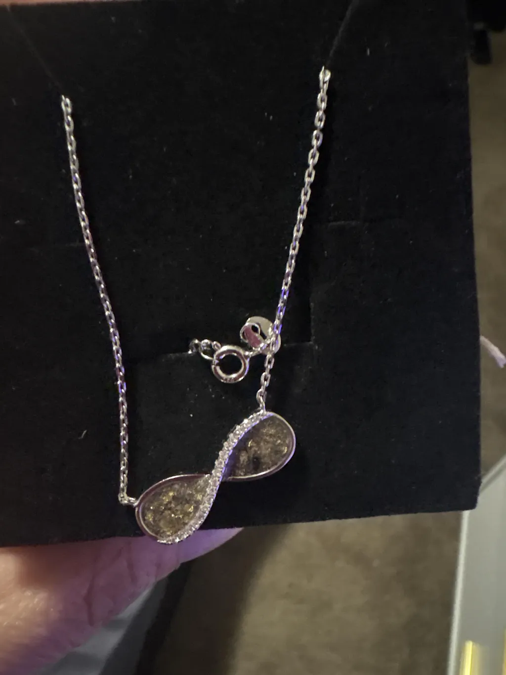 Where can I start , it’s the most beautiful necklace ever ! I had my son’s ashes put on the eternity necklace and it was way more beautiful than I imagined. Thank you so much for this beautiful piece