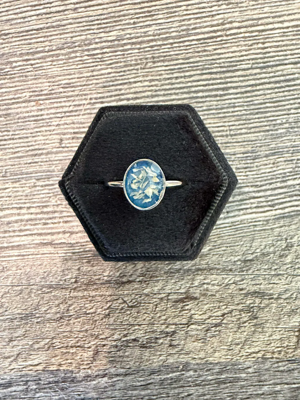 I am so pleased with my treasured ring with my brother's ashes. The fragility of life is reflected in the delicacy of this piece! My brother is always with me, and now I have a piece of him on my hand!